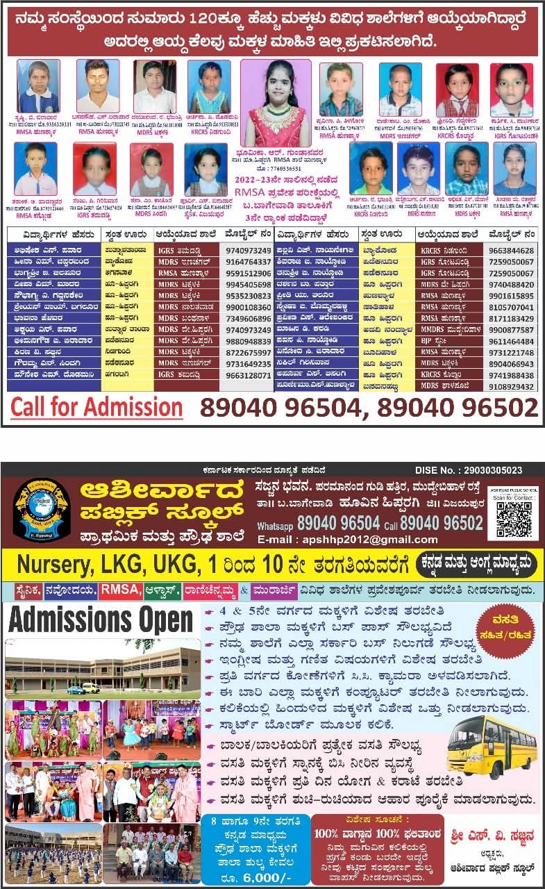 Ashirwad Public School, & Parivarthan Vidyamandir located in H-Hipparagi, is a co-educational institution offering quality education with advanced amenities. Founded in 2012 by Sri S V Sajjan, a passionate linguist and professional trainer, the school empowers students by recognizing their unique interests and talents. With a balanced curriculum blending academics, sports, and extra curricular, the school fosters holistic development. Activities like field trips, celebrations, and leadership programs enrich students’ learning experience. Ashirwad’s innovative and student-centric approach has set a benchmark in education, nurturing young minds with a focus on individuality and excellence.